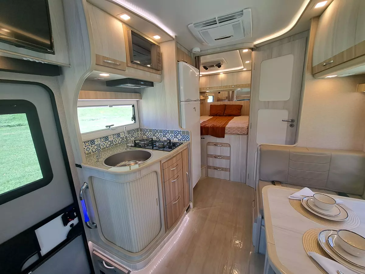 O MTB 700 é o menor motorhome fabricado pela Motor Trailer. Compacto sim, mas com um espaço interno inacreditável. A opção ideal para casais aventureiros.