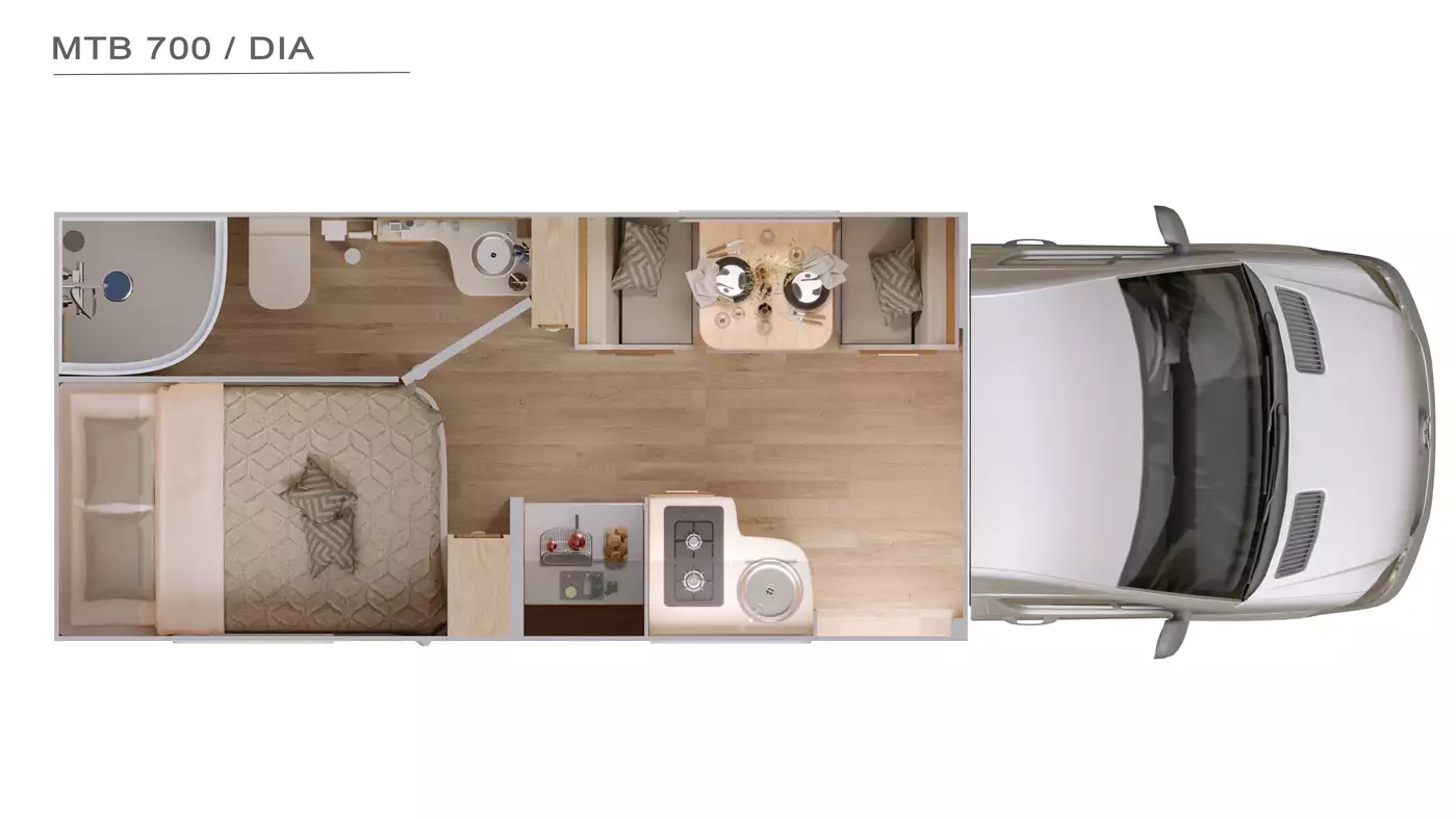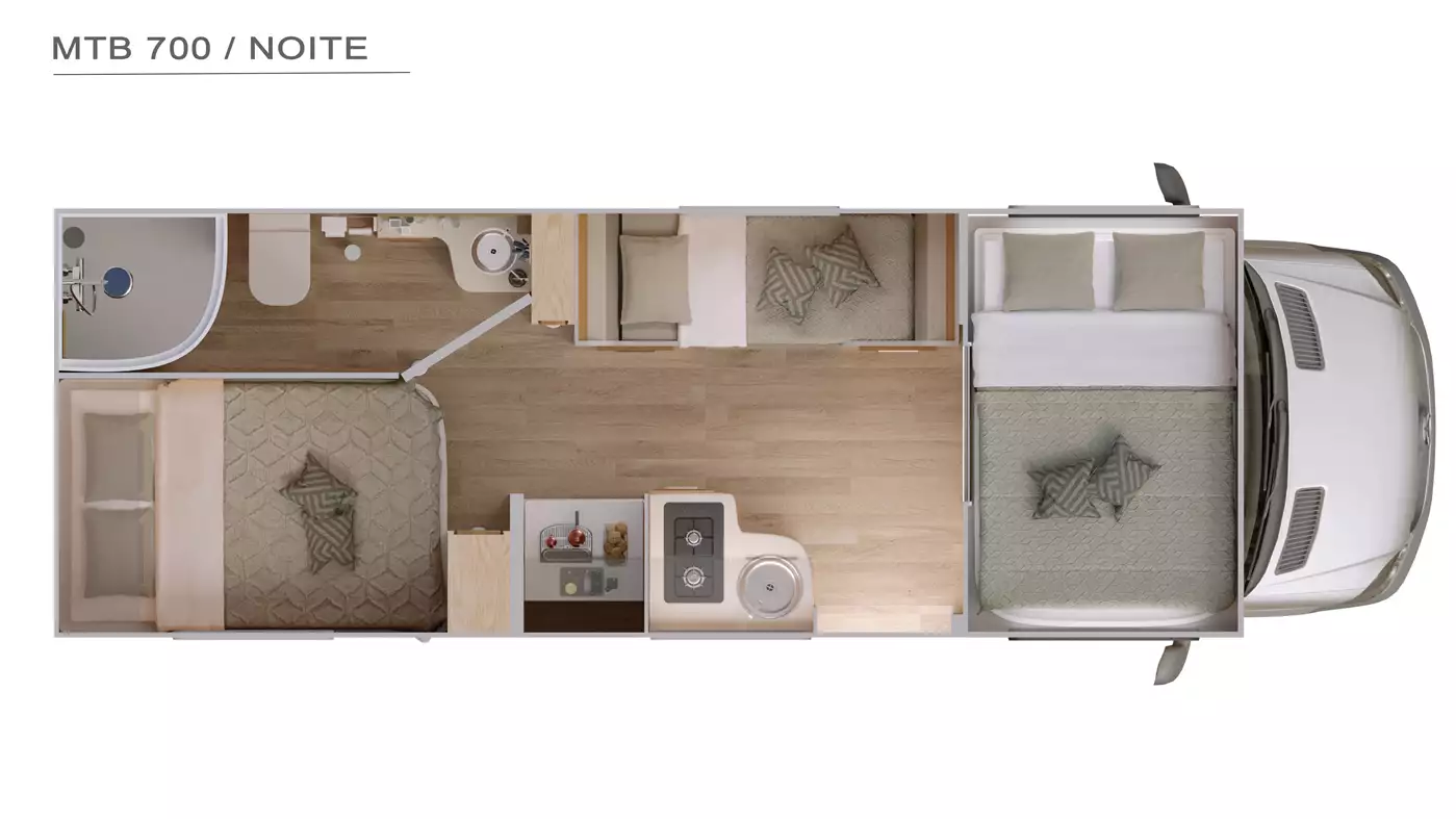 O MTB 700 é o menor motorhome fabricado pela Motor Trailer. Compacto sim, mas com um espaço interno inacreditável. A opção ideal para casais aventureiros.